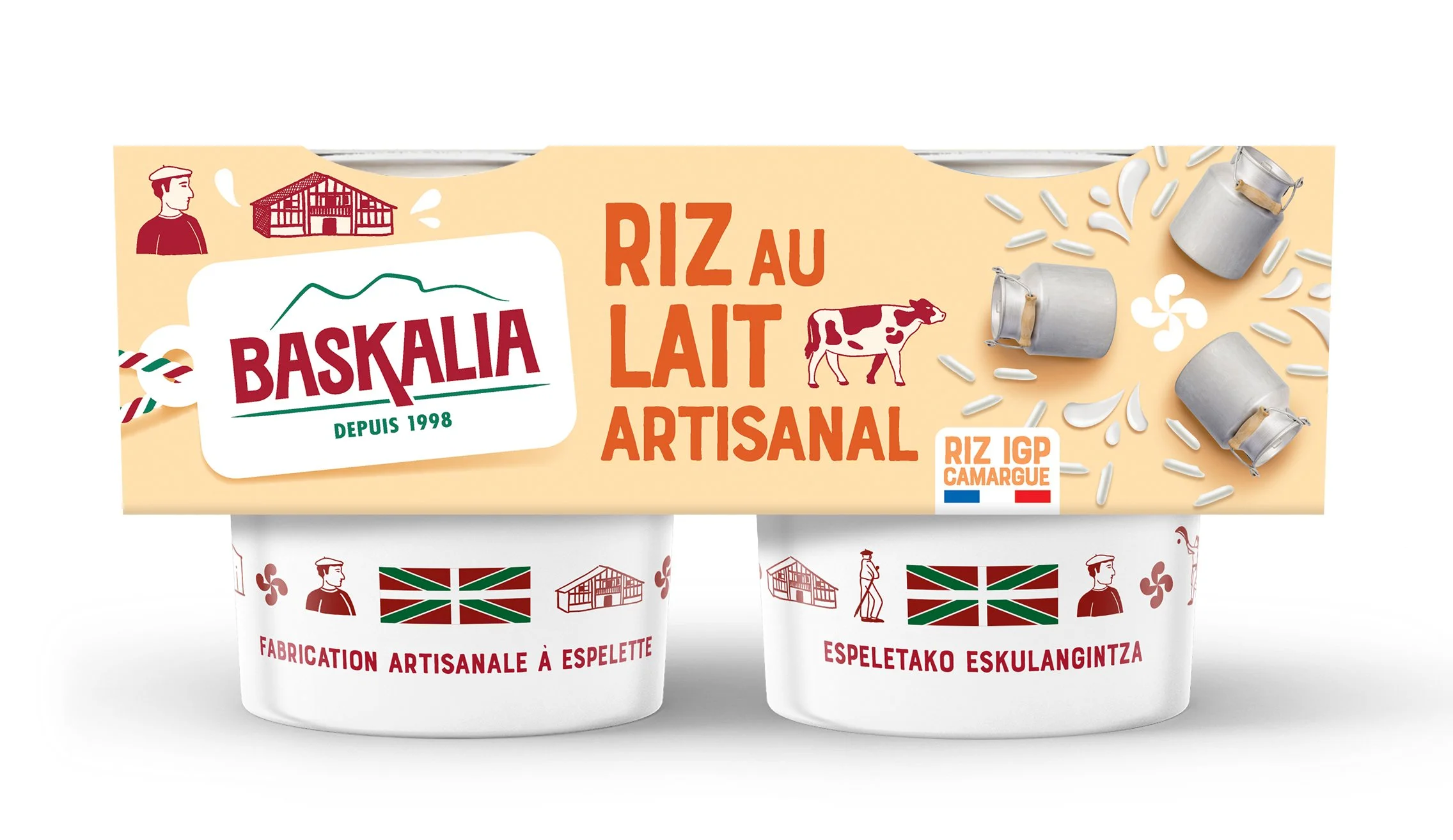 Lait des fermes du Sud-Ouest. Riz de Camargue. Fabriqué à Espelette.